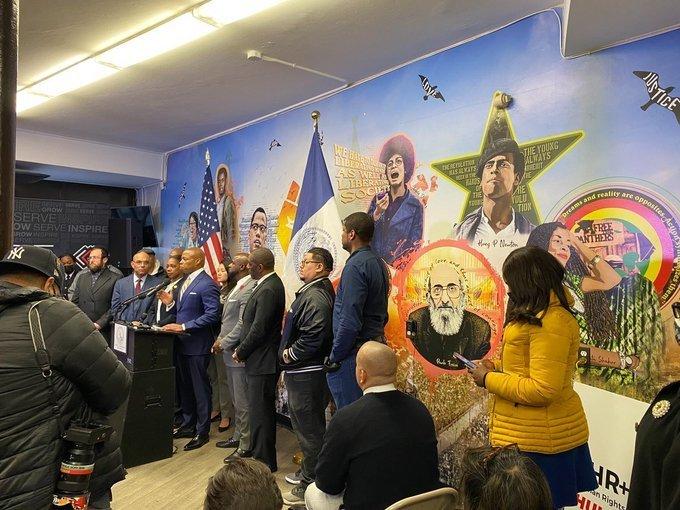Look at this mural when Mayor Adams swore in his police chief. It has a cop murderer. ✊️ Stunning.