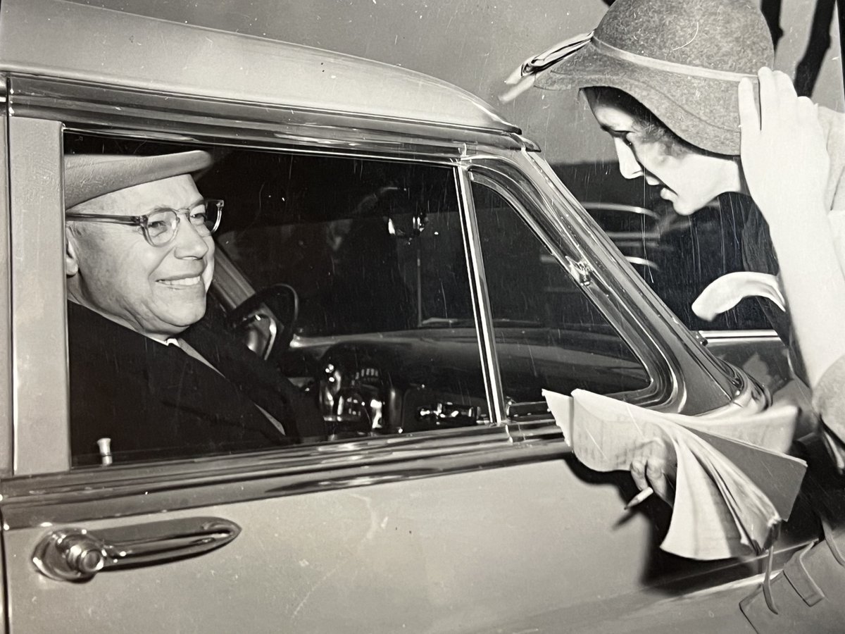 My Mom holding forth while an unidentified pipe smoker, who is definitely not my Dad, looks on. In a more sedate photo, interviewing a VIP as a cub reporter. Possibly late 40's for the first one, early 50's for the second. #DavesCarIDService https://t.co/2pmECRGjXa